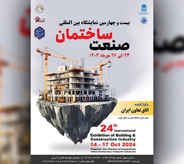 بیست و چهارمین نمایشگاه بین المللی صنعت ساختمان در مهرماه ۱۴۰۳ توسط اتاق تعاون ایران در محل دائمی نمایشگاه های بین المللی تهران، برگزار می شود.	به گزارش اخبار ساختمان به نقل از پایگاه اطلاع رسانی اتاق تعاون ایران، بیست و چهارمین نمایشگاه بین المللی صنعت ساختمان همانند سال های گذشته در مهرماه سال جاری توسط اتاق تعاون ایران با اخذ مجوز از سازمان توسعه تجارت ایران، به استناد بند۳۱ ماده ۵ اساسنامه این سازمان در محل دائمی نمایشگاه های بین المللی تهران برگزار می گردد.